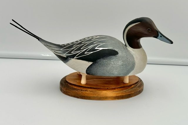 William “Bill” Cranmer New Jersey Pintail Miniature. All Original Paint and Form. Cranmer was highly skilled at painting and many of his decoys resemble Ward quality. $175