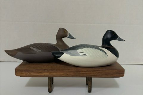 Robert “Bob” Litzenberg Elkton, MD. Bluebill miniature pair. All original paint and form signed by the artist in the lead weight on bottom. Very nice, rare pair of minis. $200